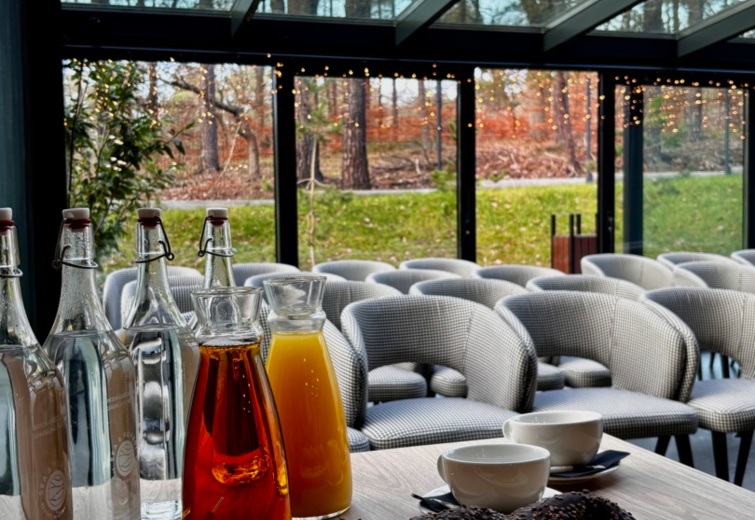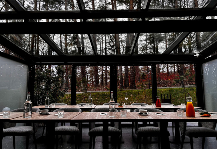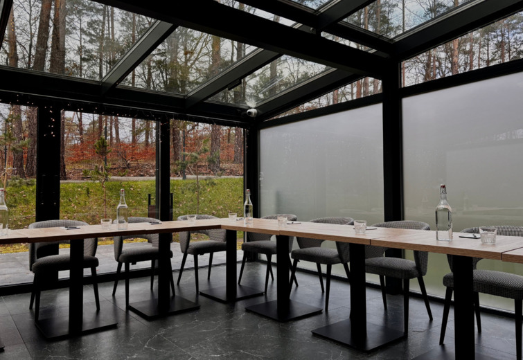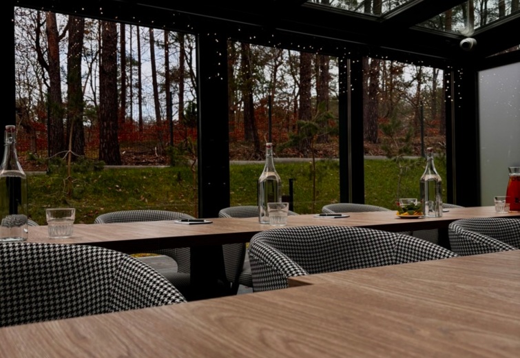 Sala konferencyjna Pine View to kameralna przestrzeń o powierzchni 45 m2 usytuowana w ogrodzie zimowym w otoczeniu lasu sosnowego. Sala pomieści do 40 osób. Idealna na mniejsze szkolenia i warsztaty.