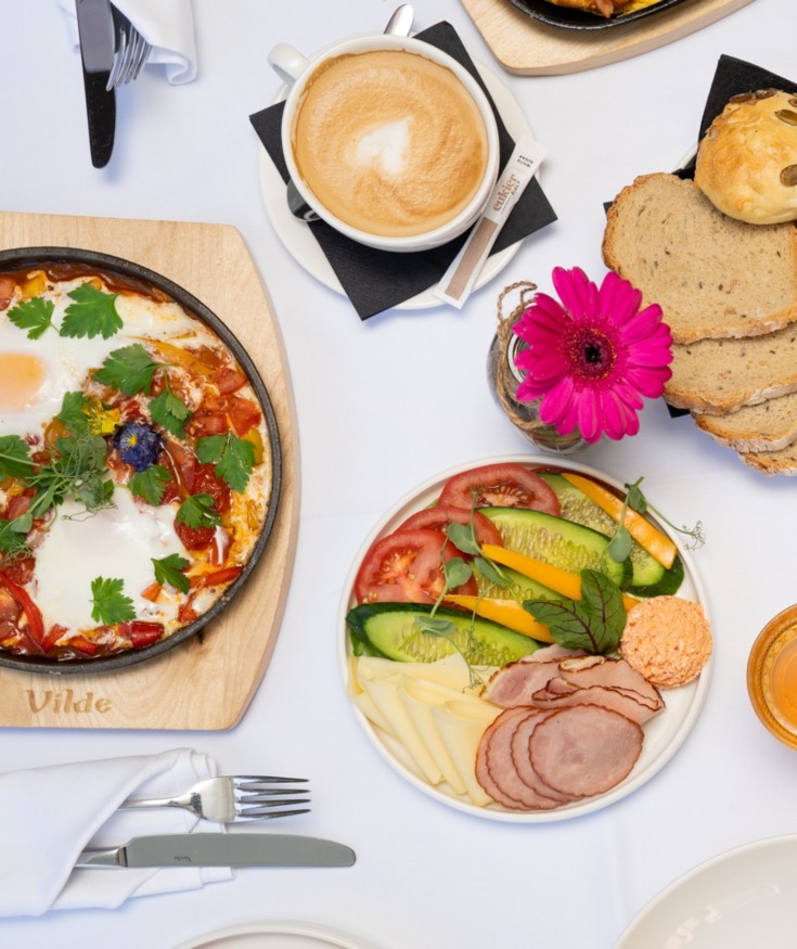 U nas śniadania są w formie zestawów dostarczanych do pokoi – bez tłocznych bufetów. Możesz zjeść je w przytulnym apartamencie, na tarasie otoczonym lasem albo zabrać ze sobą na plażę. Sezonowe owoce i warzywa, jajka od szczęśliwych kur, chrupiący chleb na zakwasie i aromatyczna kawa – wszystko podane w wygodnej formie. A jeśli masz ochotę na coś więcej, zapraszamy na śniadania à la carte w restauracji For Rest. Spokojna atmosfera, pyszne propozycje i kawa serwowana prosto do stolika. Idealne na leniwe poranki
